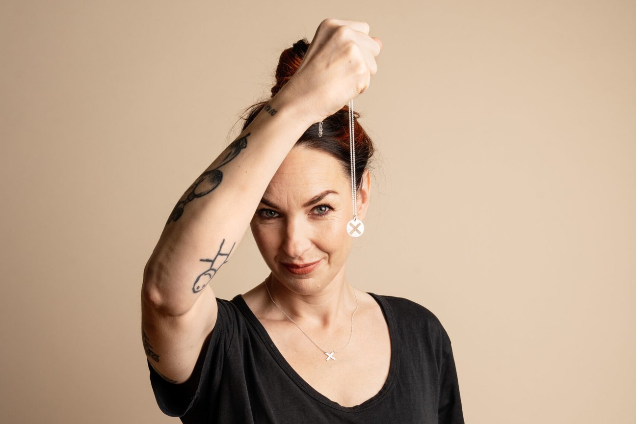 Smyckena utgår från X:et i vårt namn – som står för stopp, det okända utsatta barnet och multiplikation. För vi måste vara många och göra det tillsammans.